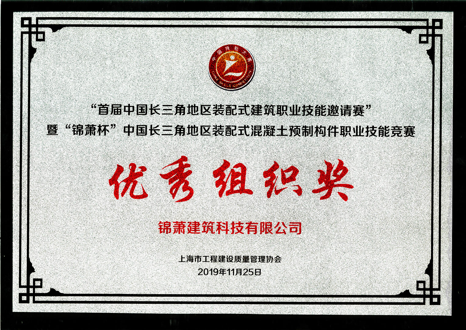 锦萧杯中国长三角地区装配式混凝土预制构件职业技能竞赛优秀组织奖