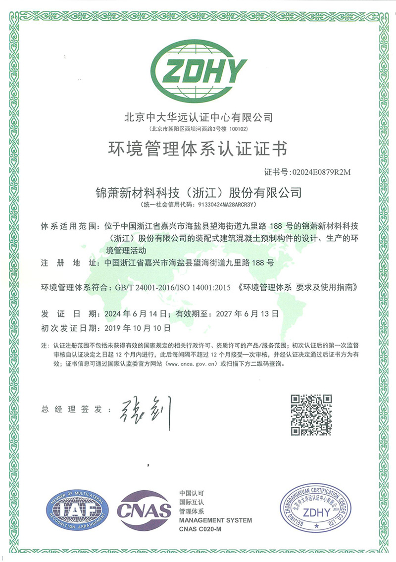 环境管理体系认证证书