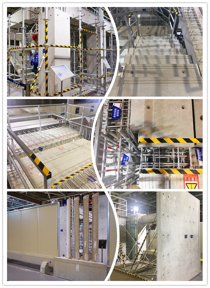 同时展出的还有全预制异形围墙和可拆卸式临时围墙,结构稳定,拆装方便;车间批量生产,大大提高了施工效率以及材料重复使用次数。