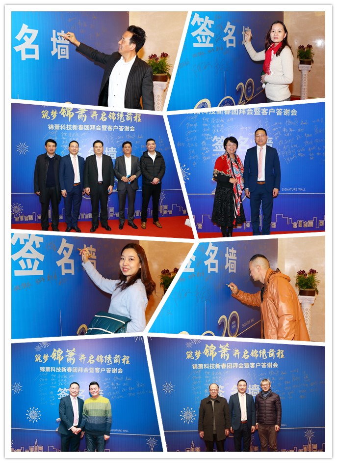 2020年1月2日,锦萧建筑科技有限公司迎春团拜会暨客户答谢会在上海松江东霖荟大酒店隆重举行。晚宴现场高朋满座,气氛热烈,来自行业内外的各级领导、嘉宾、客户朋友等400余人欢聚一堂,喜迎新年,共话未来。