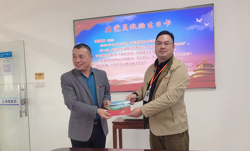 第二项议程是给党员过政治生日。为加强党员理想信念教育,提醒每位党员不忘入党初心,永利yl23411党支部沈秋良书记为11月过政治生日党员李国昌同志赠送政治生日贺卡。
