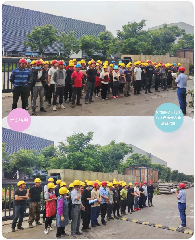6月“安全生产月”期间,公司安全管理部门分别对厂区十个生产车间、钢筋车间及堆场车间人员进行了集中安全教育培训。此次培训重点为夏季作业时的防暑降温等安全防范事项,包括如何预防中暑,如何防触电、防雷击、防淹溺、防火灾爆炸、防坠落、防扎伤等。