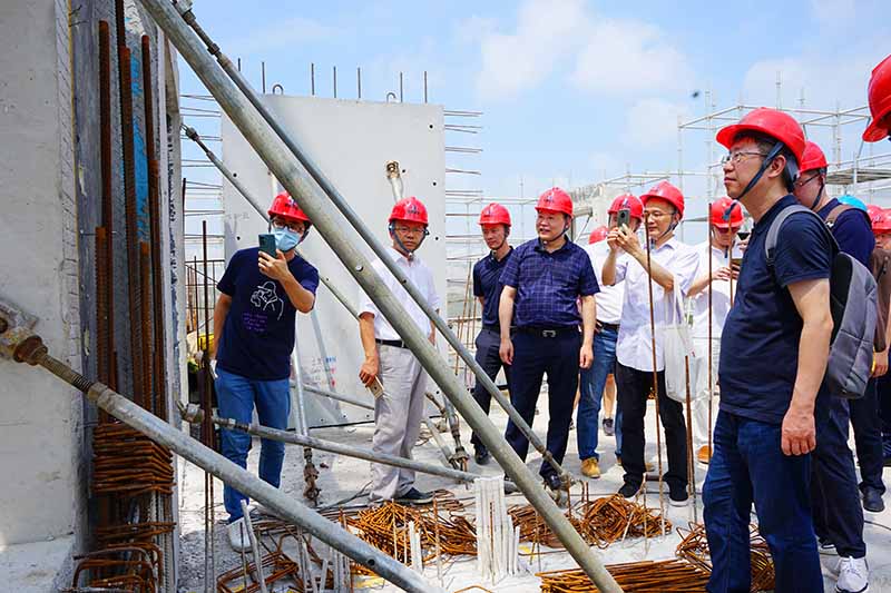 当天上午,调研团领导一行首先来到位于上海市闵行区七宝镇的古美北社区S110501单元27-01地块项目施工现场进行实地参观考察,董事长李军全称陪同。该项目为装配整体式剪力墙结构住宅工程,由上海旭融房地产开发有限公司开发,通州建总集团有限公司施工总承包,永利yl23411承接该项目PC构件生产供货并提供装配指导安装服务。