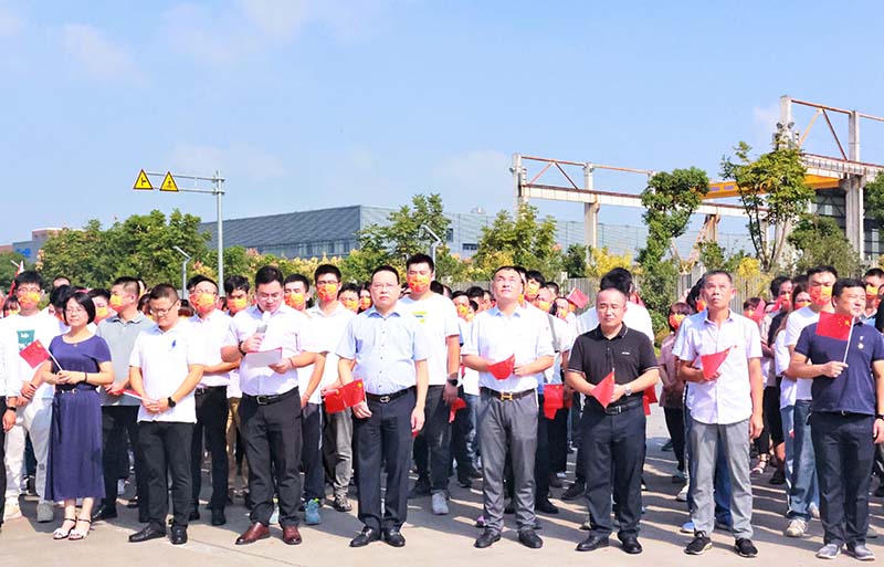 2021年10月1日,锦萧建筑科技有限公司隆重举行“迎国庆”升旗仪式,热烈庆祝中华人民共和国成立72周年。永利yl23411董事长兼总经理李军及公司管理层、全体党员、员工代表200余人参加了此次升旗仪式。