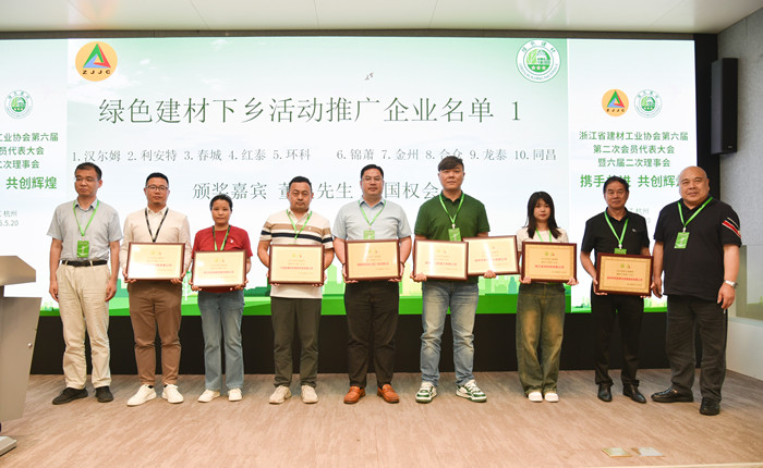 近日,浙江省建材工业协会第六届第二次会员代表大会暨六届二次理事会在杭州顺利召开,会上公布了“2025年浙江省绿色建材下乡推广企业”名单并颁发奖牌,永利yl23411榜上有名。