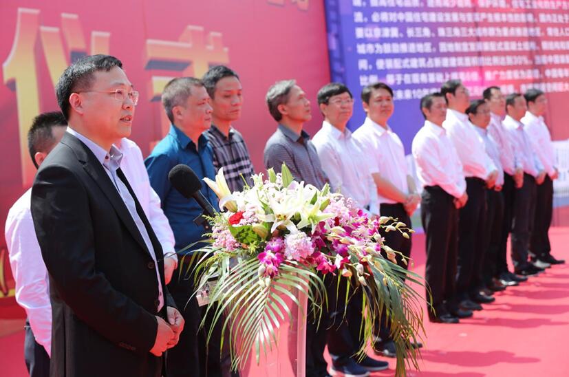 永利yl23411董事长李军介绍投资兴建"年产70万立方米建筑装配式预制构件生产建设项目"是积极响应国家发展绿色建筑业的号召,项目总投资为8.05亿元,新征建设用地152601平方米,工厂生产及配套用房建筑面积8.8万平方米,拥有10个车间,成品堆场面积为8.34万平方米,并配备运输码头一座,建成后年产量最大达70万立方米,将成为目前国内单个最大的装配式PC构件生产基地,产品会覆盖上海、苏州、嘉兴、杭州、绍兴、宁波等长三角地区,并对前来参加奠基仪式的各位领导和各界朋友表示衷心感谢,作了欢迎词。